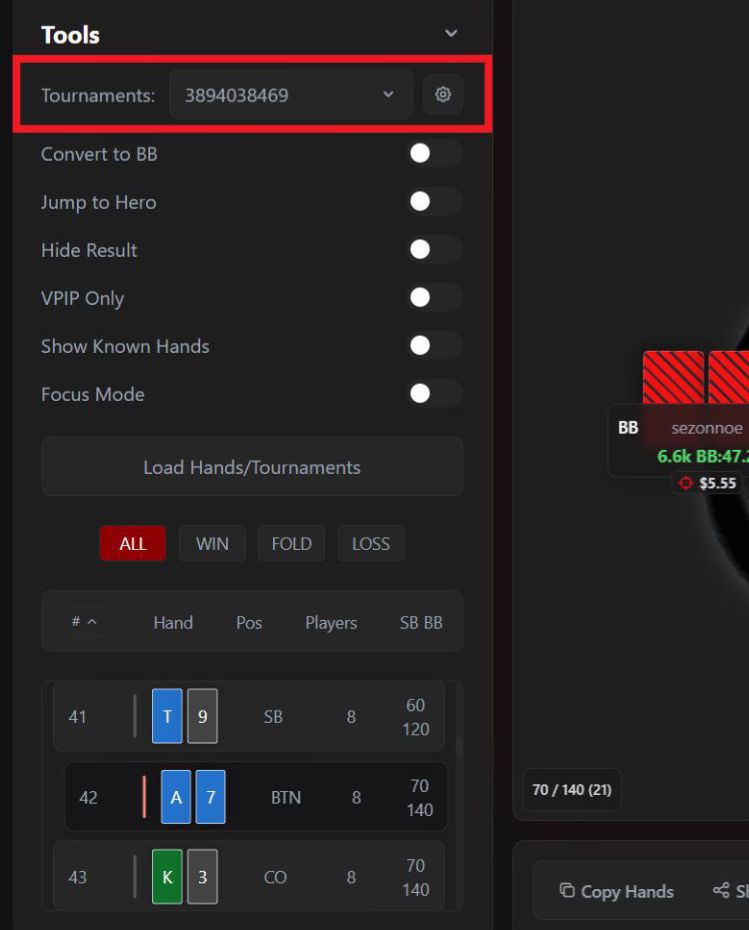 Toggle it, and see only hands where you confided your chips in, use our different tools to customize the replay catering it to your own needs.
