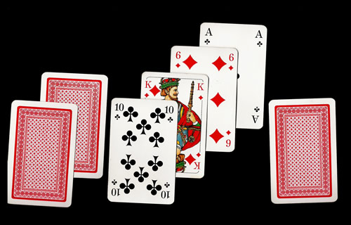 In this game, each player is dealt five hidden cards, and after a round of betting there is a draw, in which players are able to discard and draw new cards.